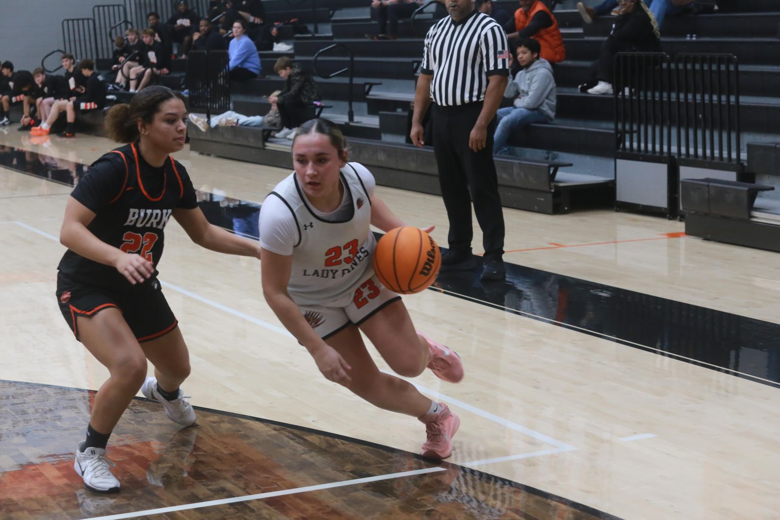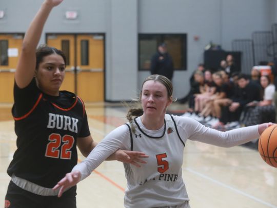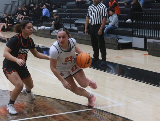 The Lady Pines were scheduled to host Burkburnett Friday, Jan. 23, but winter weather forced the game to be moved up to Thursday, Jan. 22. Despite a strong home crowd, Burkburnett pulled away for a 58-32 district win.